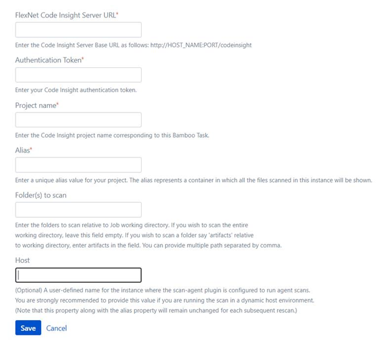 - Enter the following information in the FlexNet CodeInsight Scan Task Configuration window: