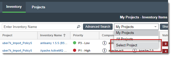 (Optional) To filter the view to a specific project, click Select Project to select a specific project.